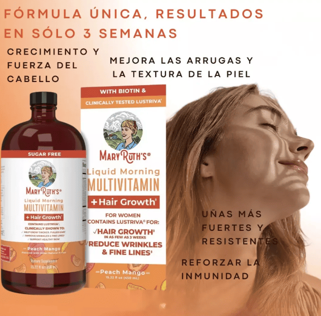 A diferencia de los suplementos tradicionales, MaryRuth’s se absorbe en segundos gracias a su innovadora fórmula líquida. Con solo una cucharada al día, tu cuerpo recibe un cóctel de vitaminas y minerales que apoyan tu energía, belleza y sistema inmune.
